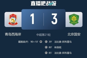 体育资讯8月16日讯 中超第21轮,北京国安客场3-1击败青岛西海岸,法比奥打进国安第一个和第三个进球,林良铭打入第二球。凭借本场胜利国安在联赛积分榜升至第三位。