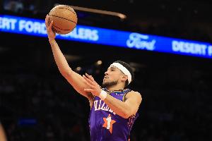 上半场,太阳球星布克表现不错,中距离很稳健,在18分钟的时间里,投篮9中5,三分球1中0,罚球5中5,拿到15分1篮板5助攻的数据。